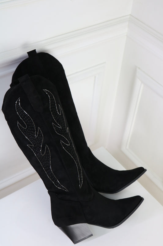 Bottes Santiags Cowboy Western Noir, Talon Bas et couture texane – Sélection Halloween