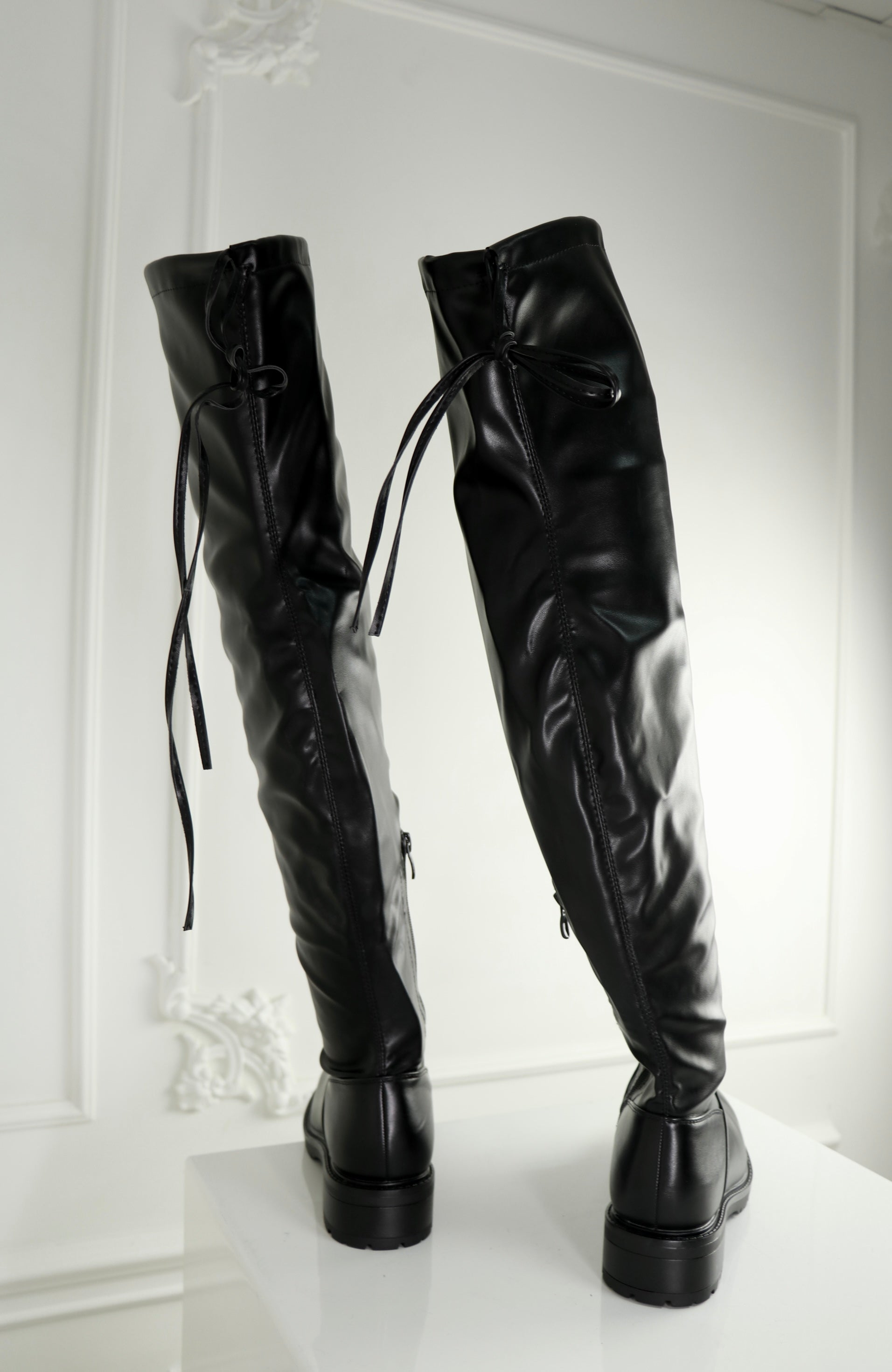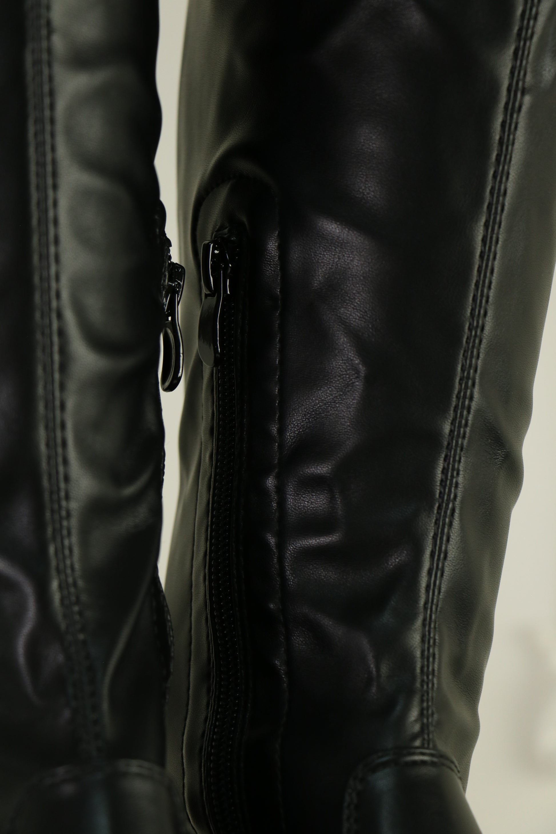 Ces Cuissardes Beige en Cuir Végane Stretch ajustent et allongent instantanément votre silhouette. Micro-talon bloc stable de 3cm pour marcher toute la journée sans compromis sur l'allure. Le lacet à nouer derrière la cuisse garantit un maintien anti-glisse fiable. Fermeture éclair discrète pour un enfilage facile.
