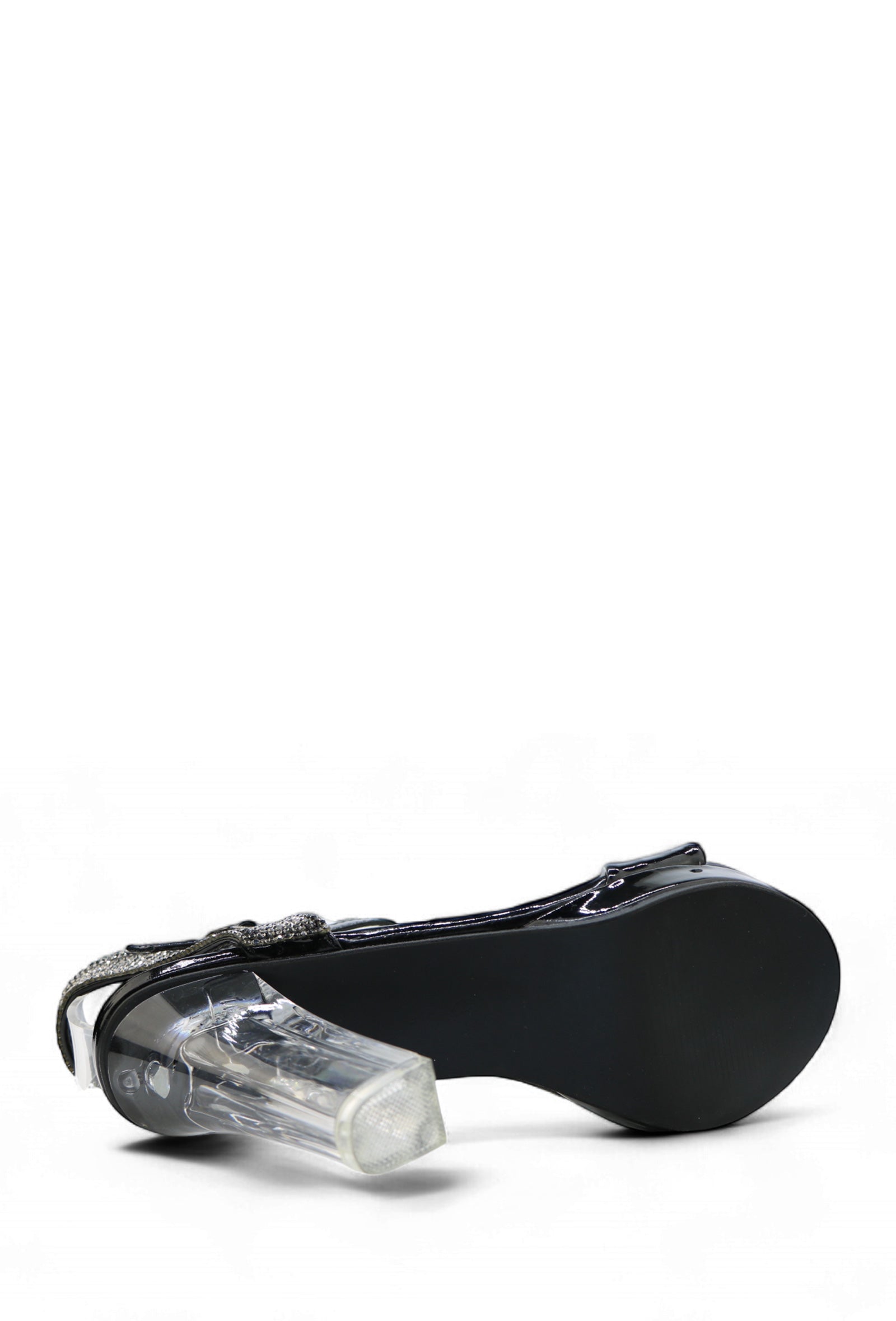 Sandales à talon noir, sandales élégantes femme, sandales à talon transparent, sandales soirée femme, sandales glamour, sandales mariage, sandales tendance 2025, sandales à bride fine, sandales chic femme.