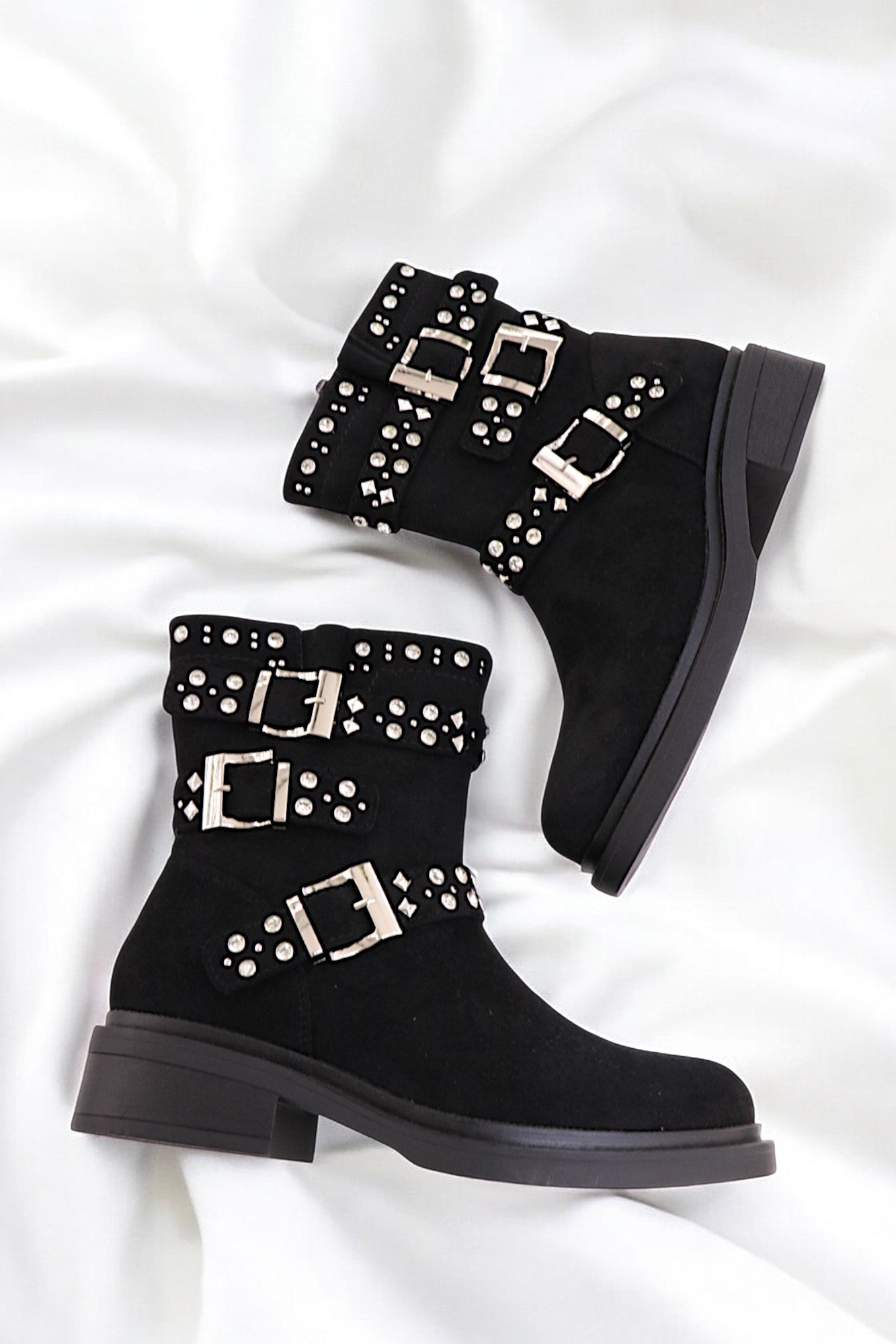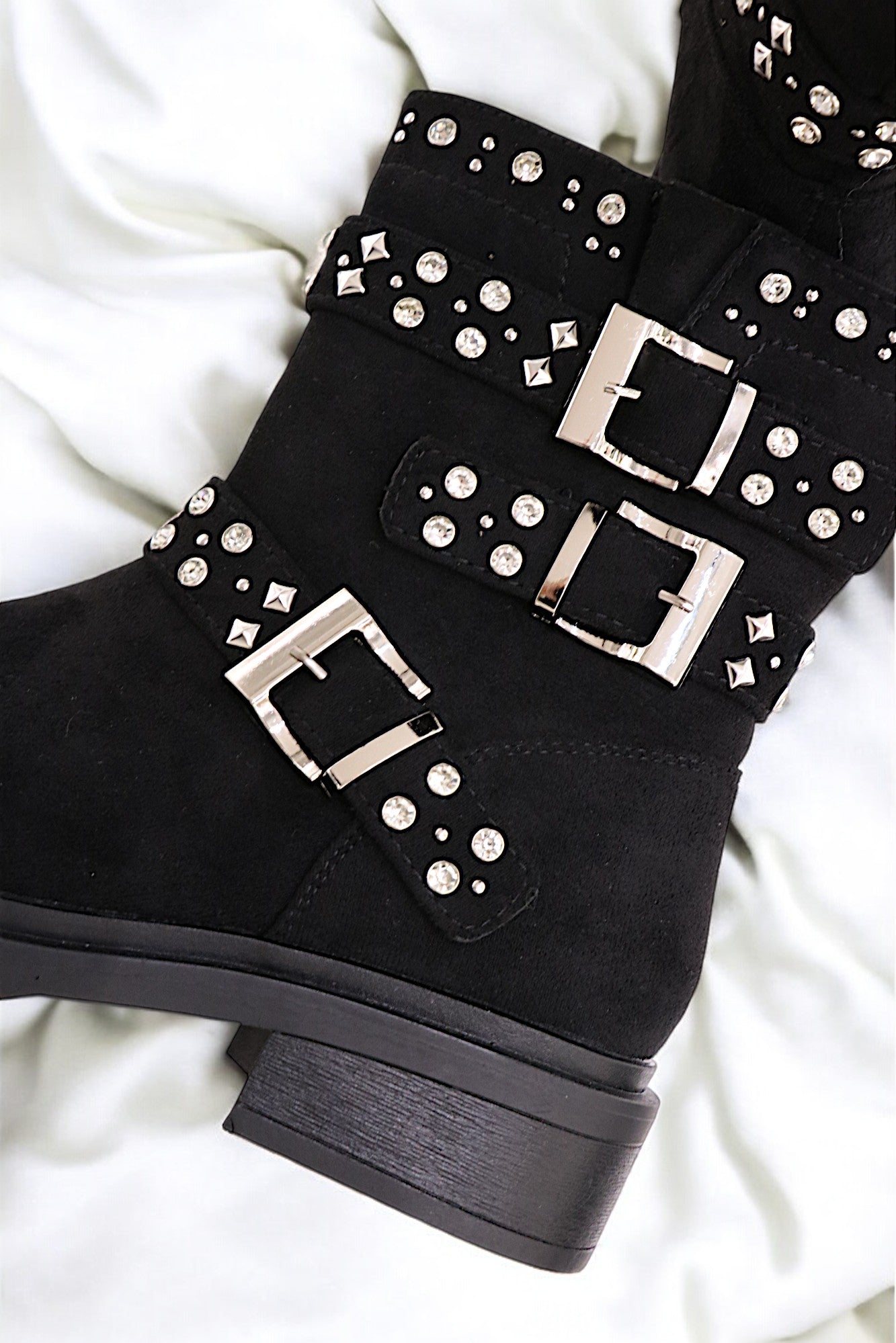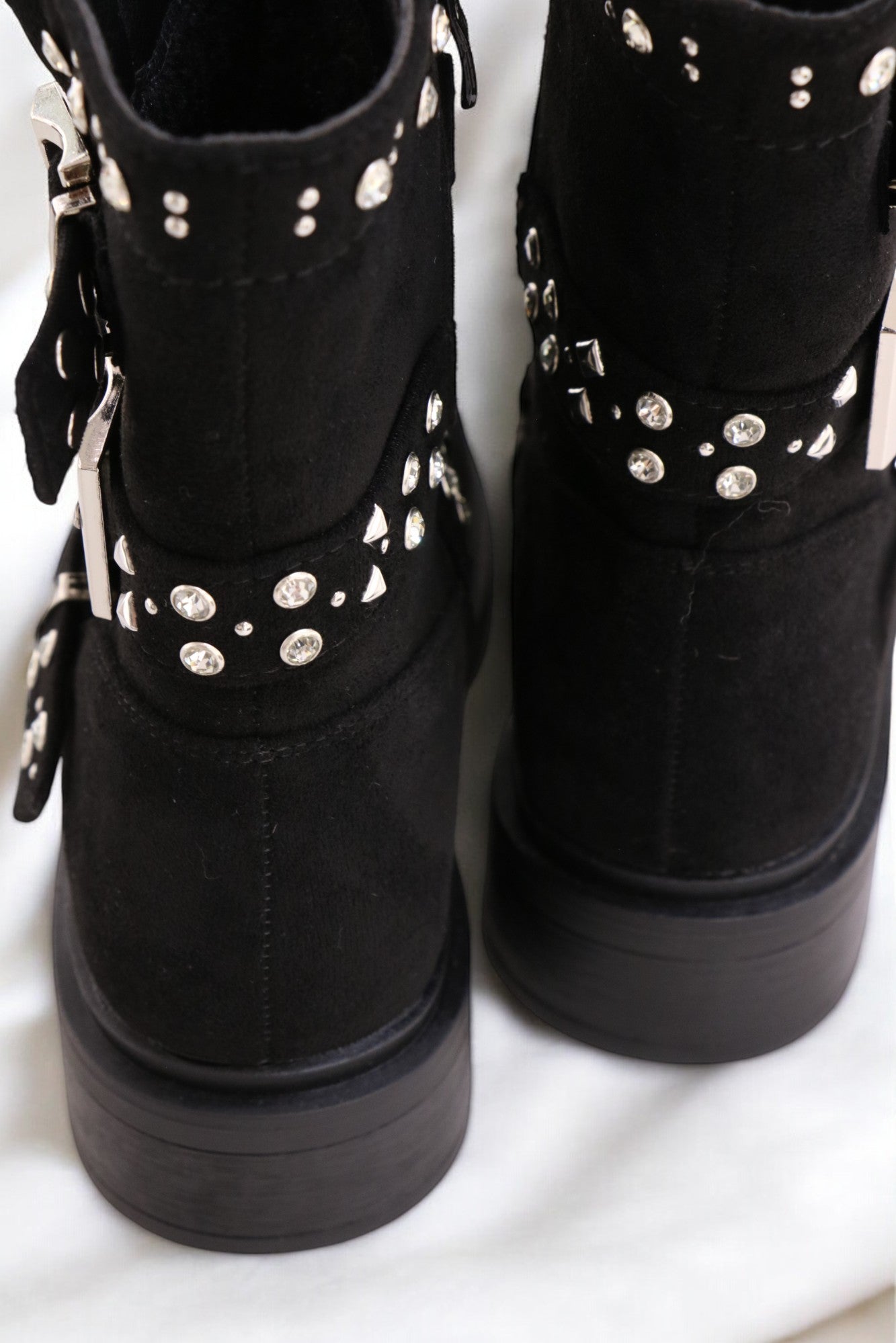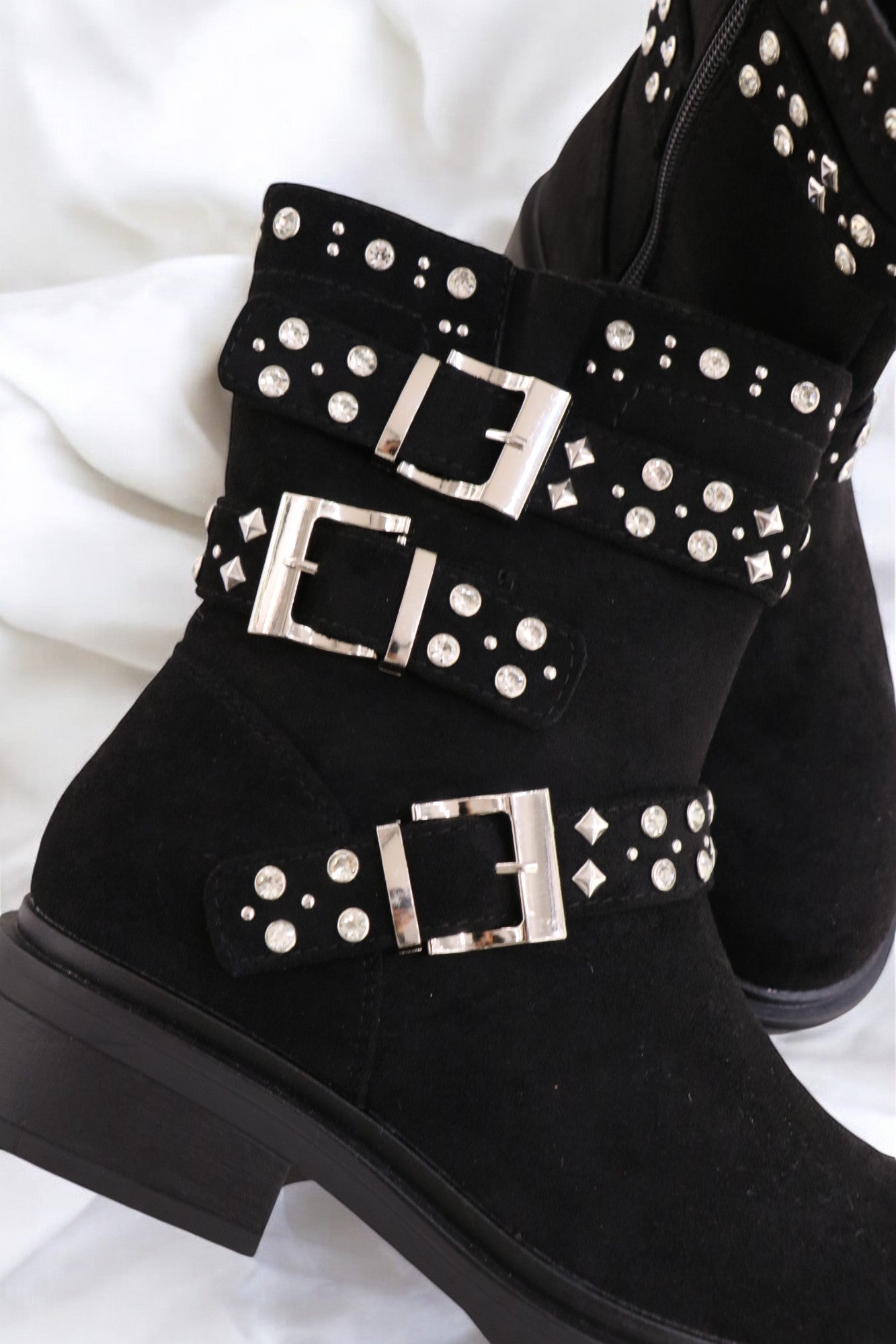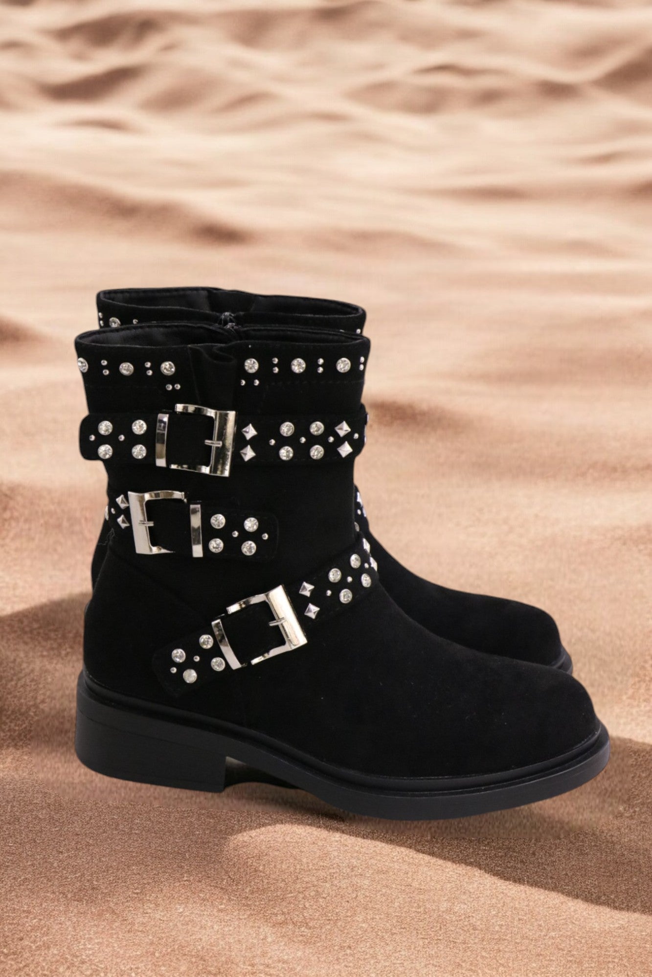Découvrez les bootines Sérénite en matère Suède, une fusion parfaite entre élégance et douceur. Inspirées par la pierre précieuse de sérénité, elles évoquent un éclat subtil et apaisant. Confectionnées en cuir de qualité, leur texture délicate et leurs détails scintillants rappellent les reflets doux de la sérénité.